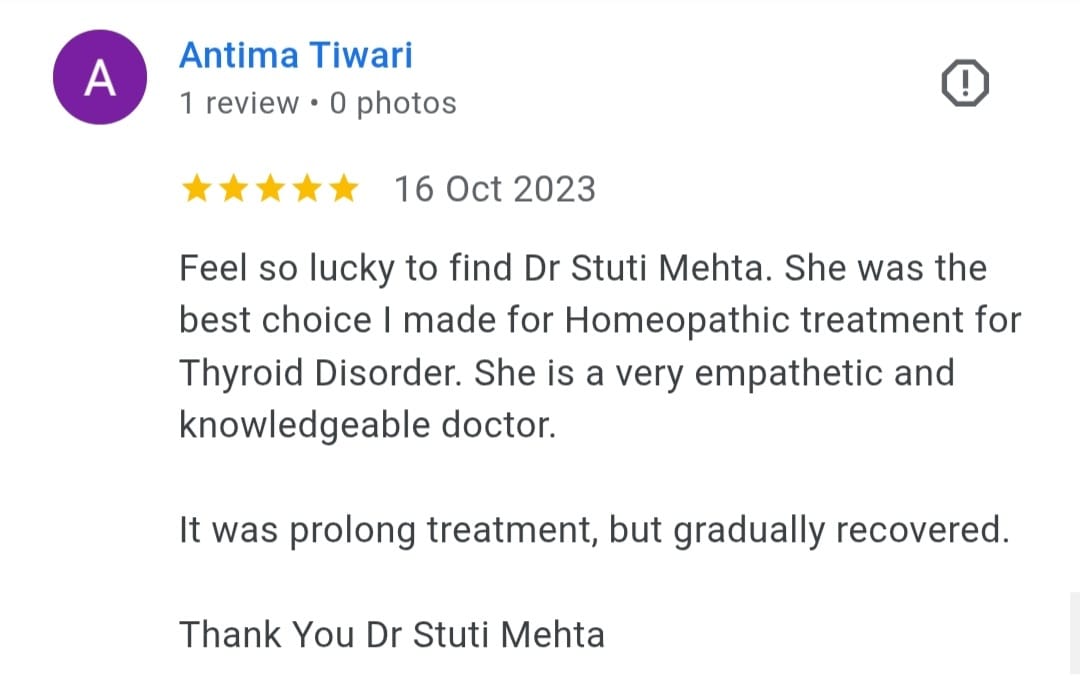 At Dr Stuti's Advanced Homeopathic Clinic, the focus is on gentle, safe, and effective homeopathic care-delivered with empathy, integrity, and long-term vision. Patients trust her not only for her medical expertise, but for the reassurance and confidence she brings to every stage of their healing journey.